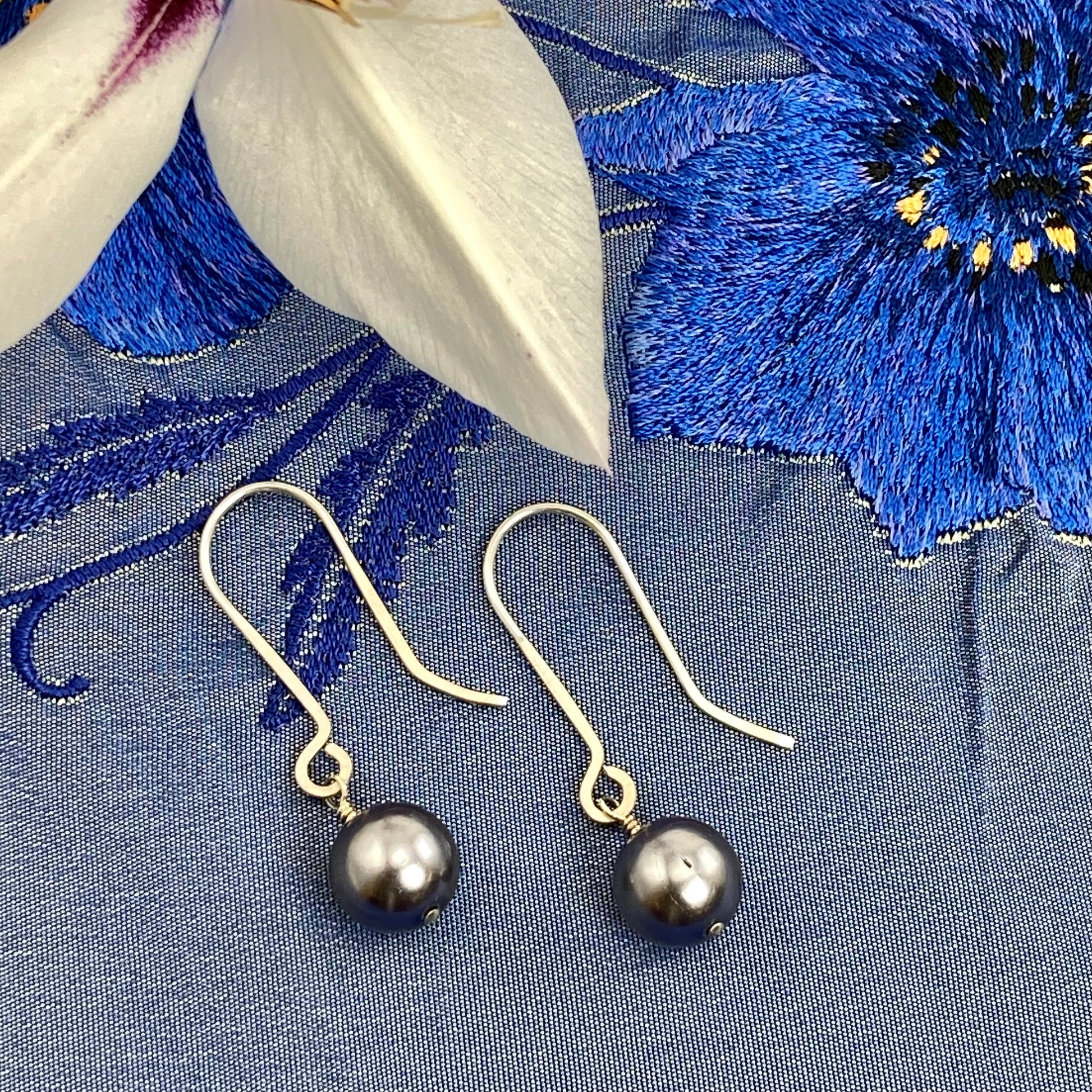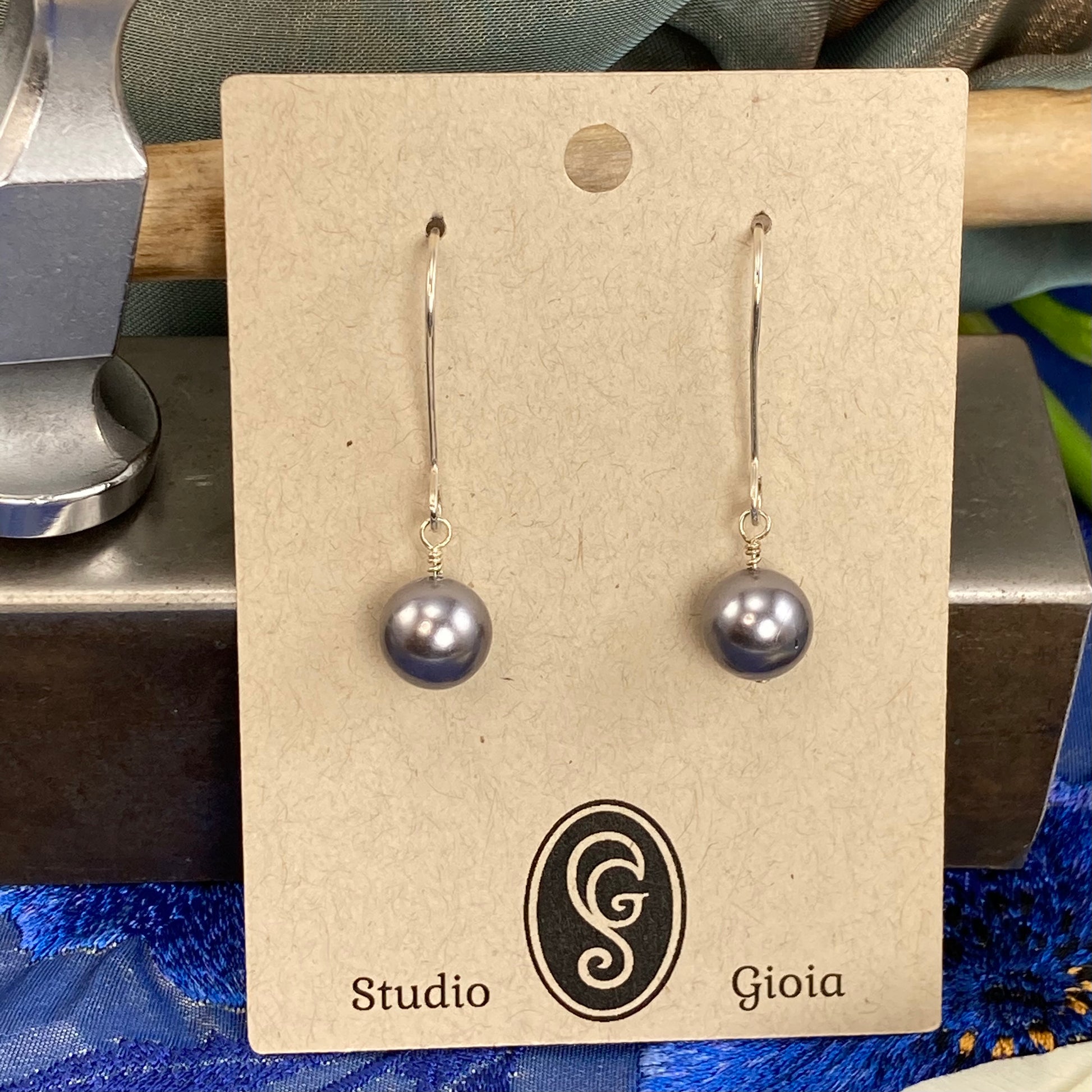 A timeless classic, dressed up, down or anywhere in between, these are sure to fit your mood. 10mm gray freshwater cultured pearl, sterling silver wire wrapped, and suspended from my signature hand formed 20g sterling silver ear wires.