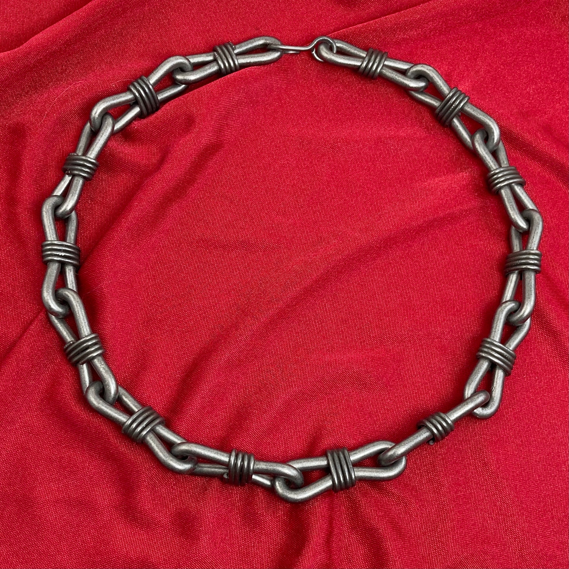 Sexy, Punk Chic! Great for all sexes! This hand formed recycled steel chain, wrapped with steel wire comes in 3 sizes, and has a durable clearcoat