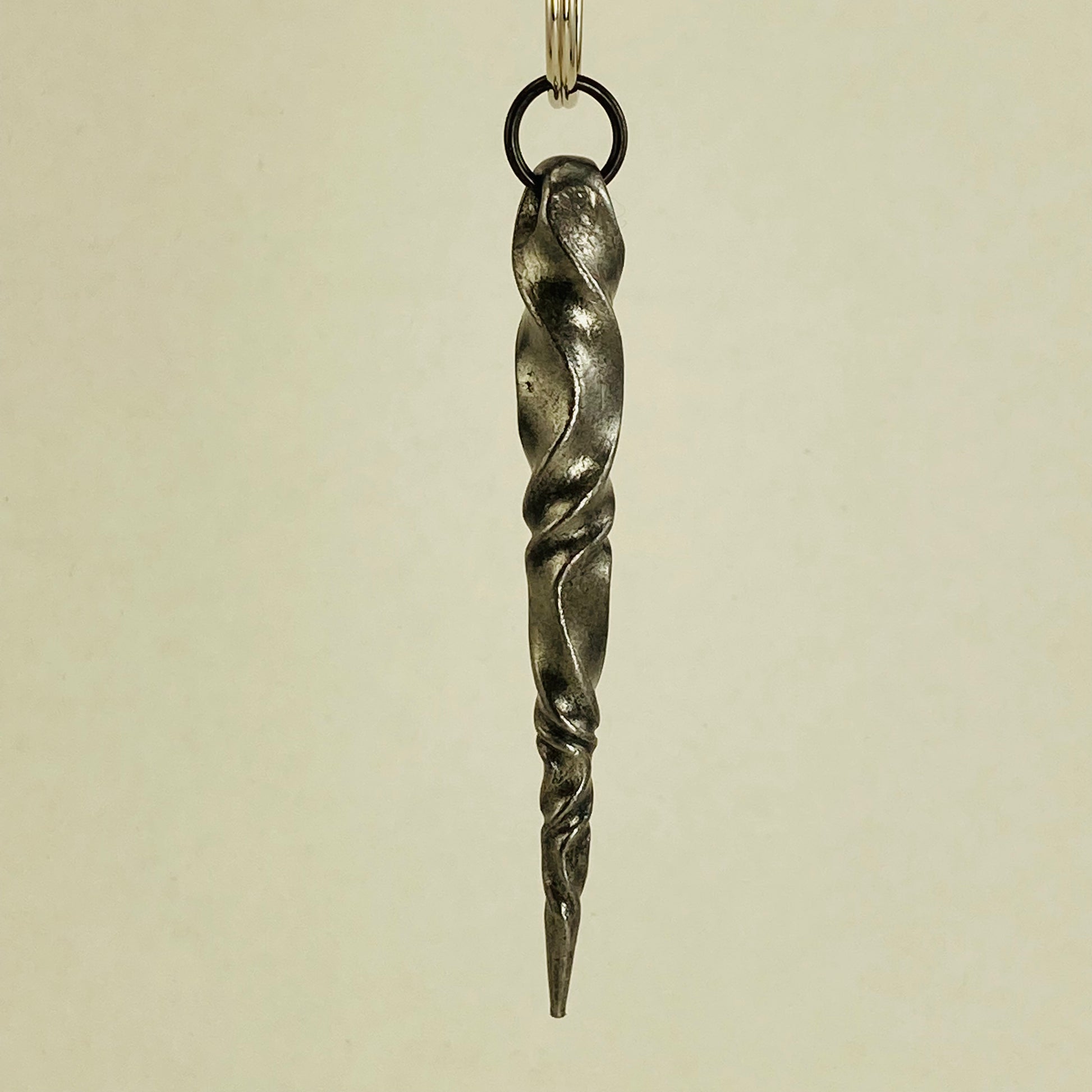 So cool! Hand forged reverse twisted forged iron spike "eye gouger" key ring.